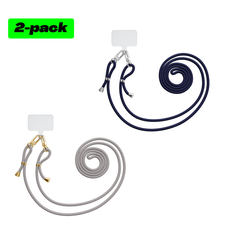 Met deze set bevestig je moeiteloos je telefoon aan twee stijlvolle telefoonkoorden. Beide koorden hebben een verstelbare lengte, zodat je je telefoon comfortabel om je nek of schouder kunt dragen.