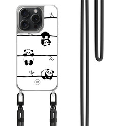Mooie Telefoonhoesjes iPhone 15 Pro hoesje met zwart koord - Panda